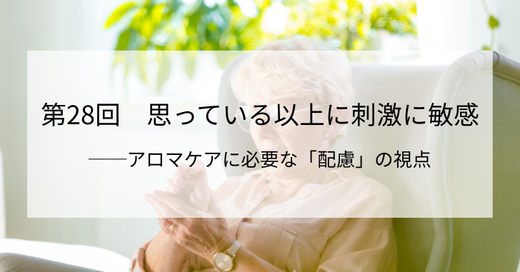 2025年8月20日 / 最終更新日時 : 2025年8月20日 ReleasingTime 第28回 思っている以上に刺激に敏感──アロマケアに必要な「配慮」の視点 Bluesky コメントを残す コメントをキャンセルメールアドレスが公開されることはありません。 ※ が付いている欄は必須項目ですコメント ※ 名前 ※ メール ※ サイト 上に表示された文字を入力してください。 Δ このサイトはスパムを低減するために Akismet を使っています。コメントデータの処理方法の詳細はこちらをご覧ください。